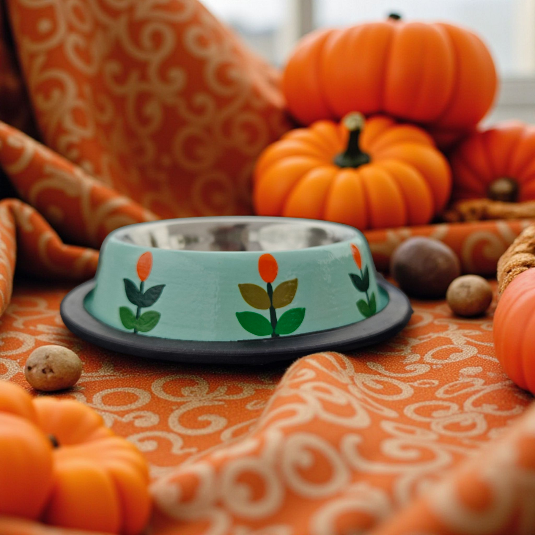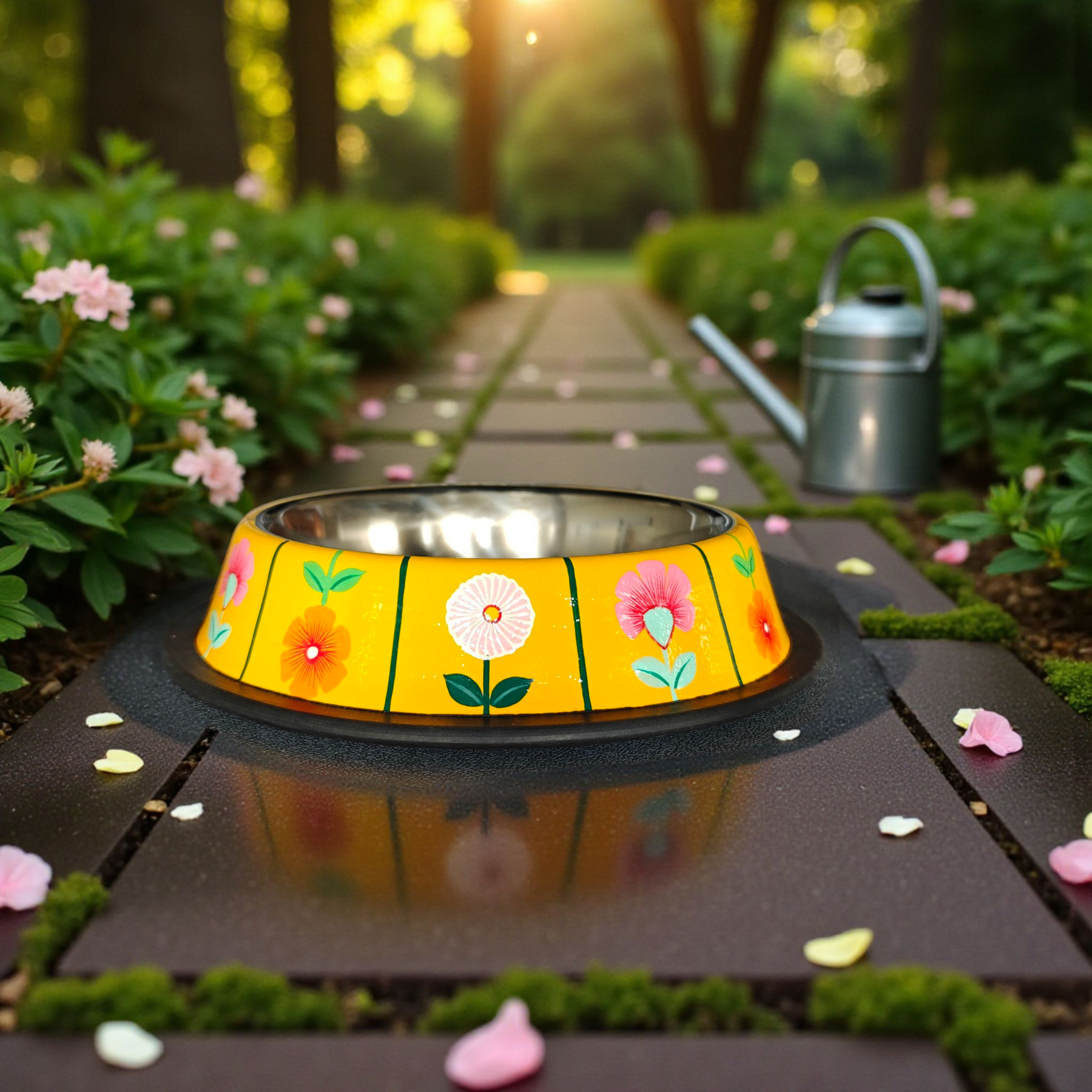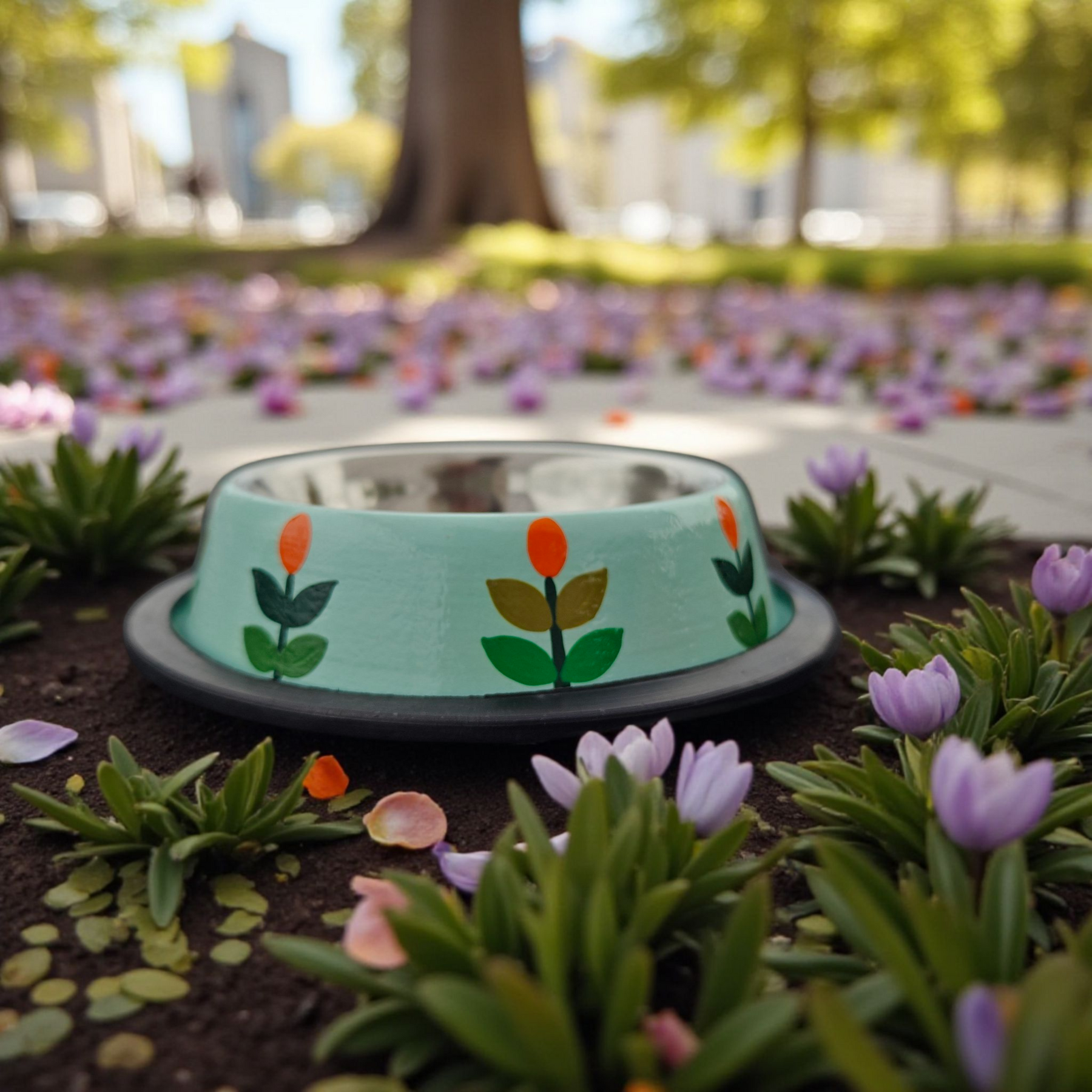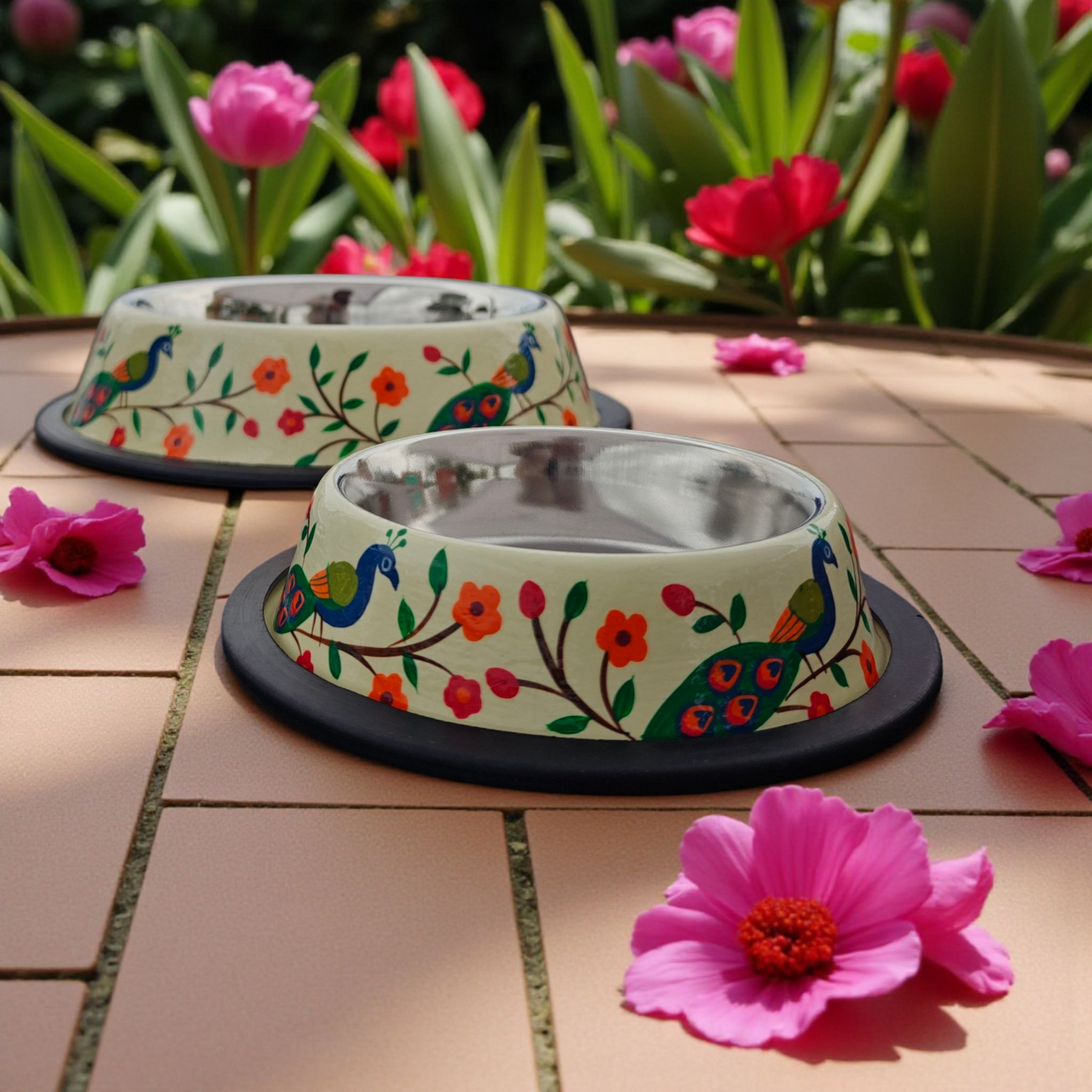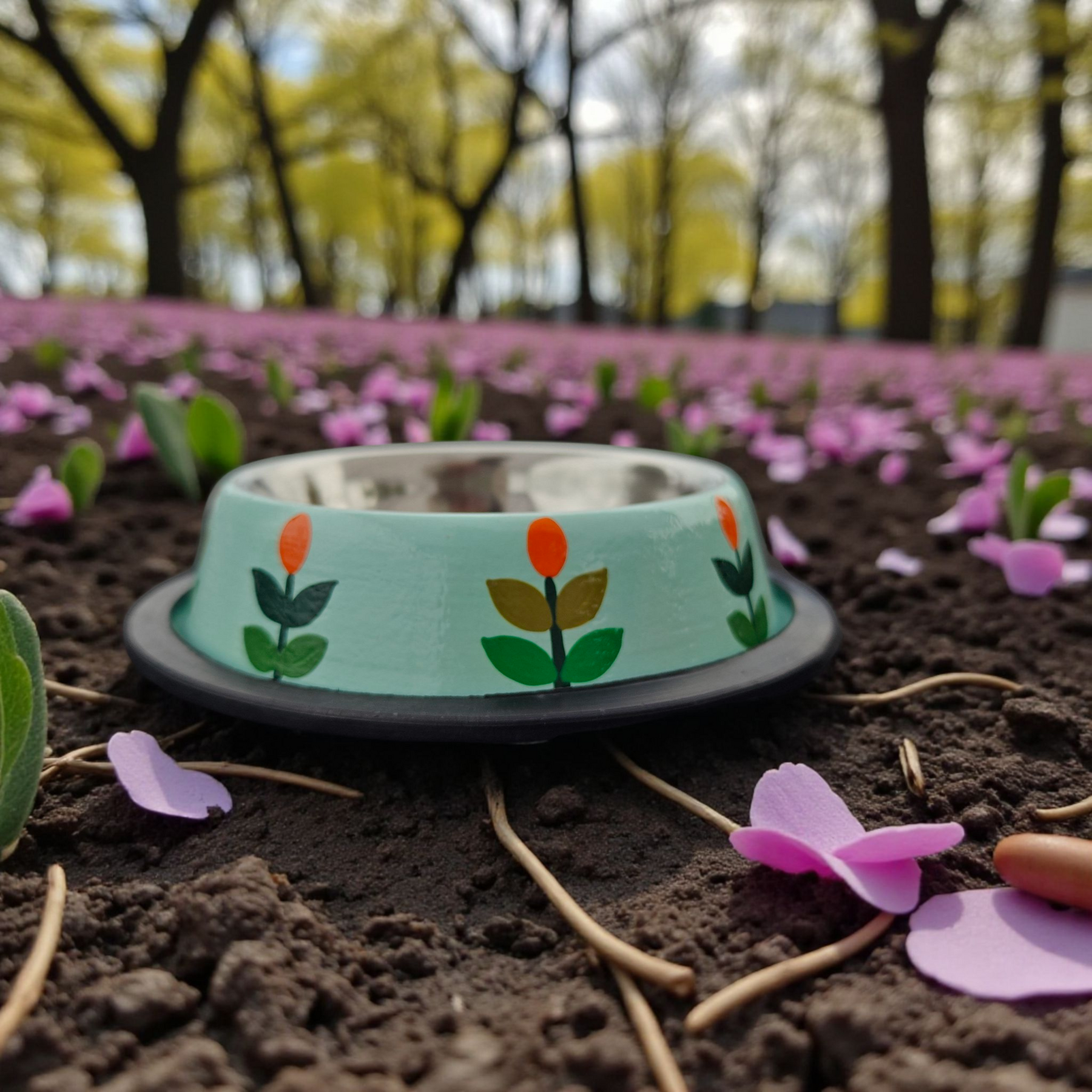 Premium Stainless Steel Pet Bowls – Non Slip & Durable - Floral Collection - Tulip